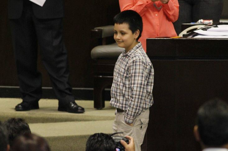 El niño de nueve años fue invitado por la Comisión de Ciencia y Tecnología de San Lázaro, que preside el diputado José Bernardo Quezada Salas, y el presidente de la Mesa Directiva, Jesús Zambrano Grijalva, quien durante la sesión resaltó su tenacidad y dedicación.