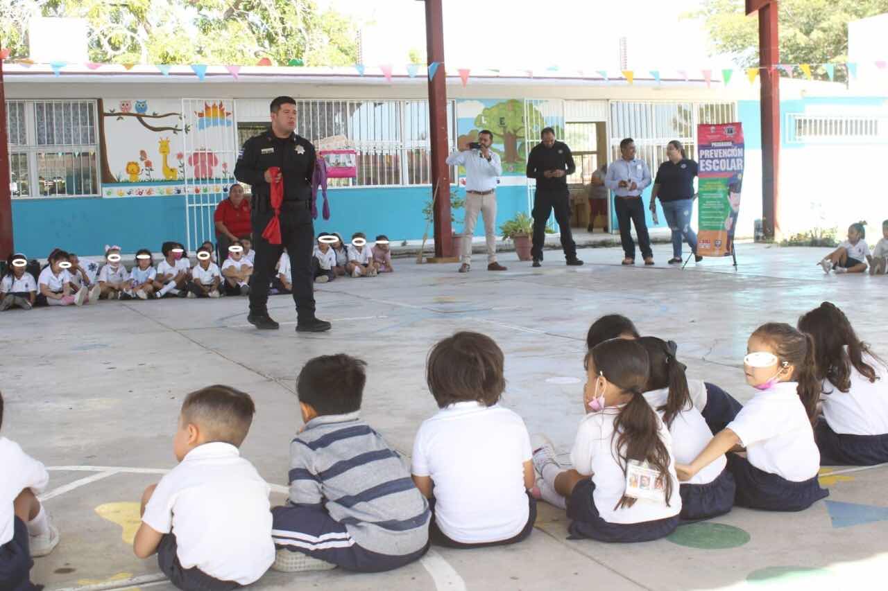 Mazatlán, Sinaloa.- Conocer valores, situaciones de riesgo en la calle, casa o escuela, fueron parte de las actividades que el departamento de Programas Preventivos de la Secretaría de Seguridad Pública y Tránsito Municipal llevó al Jardín de Niños Fray Pedro de Gante en la colonia Libertad de Expresión.